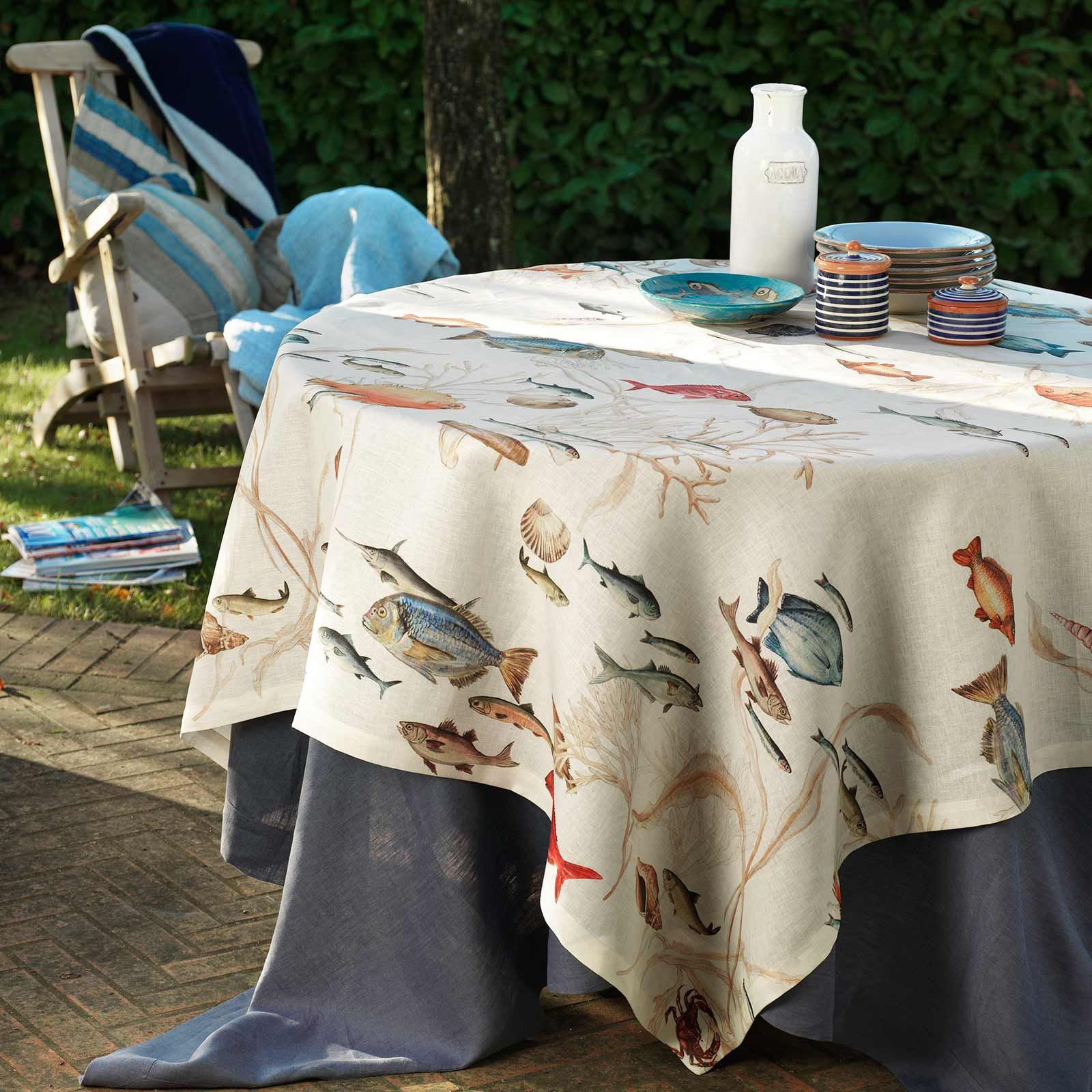 TESSITURA TOSCANA TELERIE Tovaglia in tessuto Stampato con fantasia marina, Orlo Dritto.